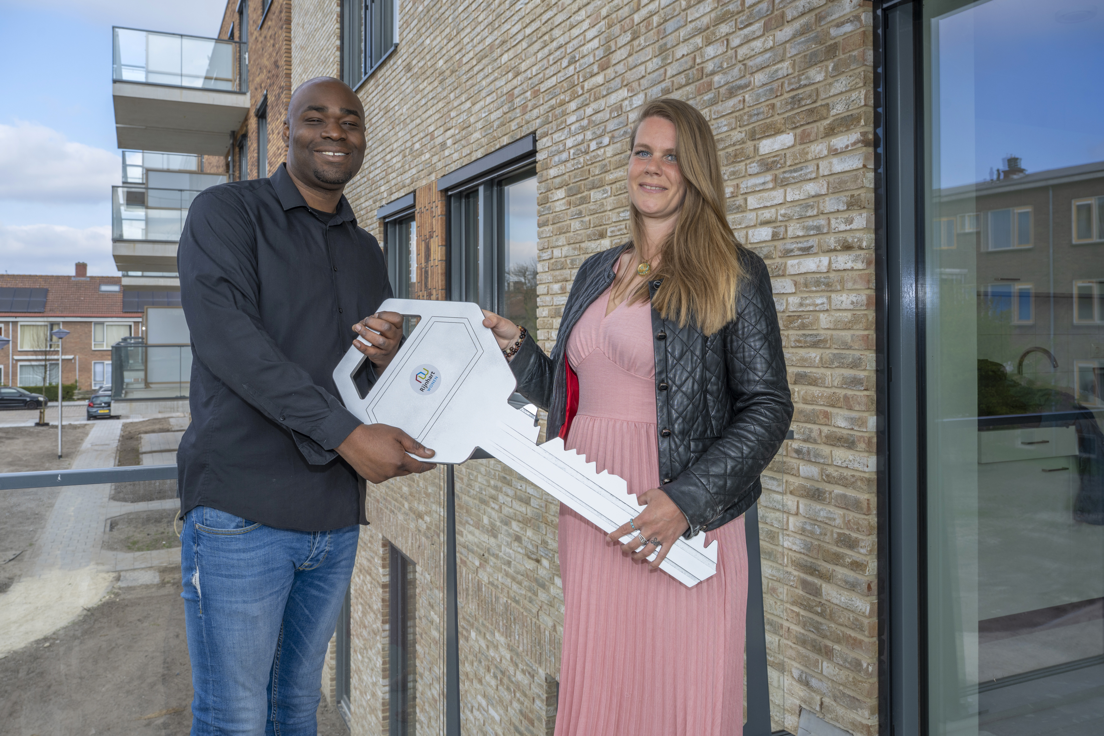 Het is zover! De eerste huurders hebben de sleutel van hun nieuwe woning aan de Pinksterbloem in Leiderdorp.