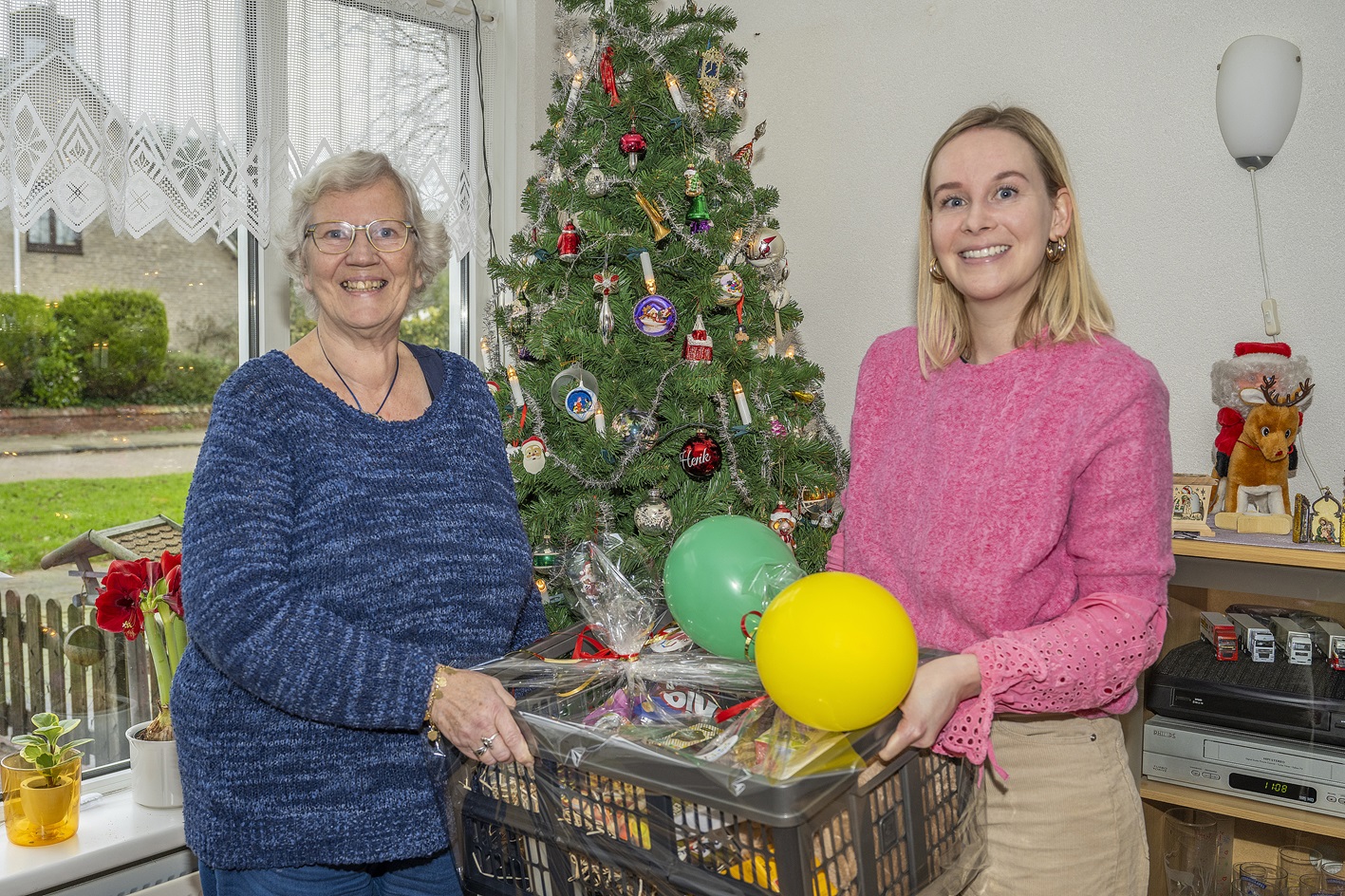 Marga gunde haar buurvrouw Rina een kerstpakket. “Rina versiert elke kerst de hal in ons gebouw. Ook was ze laatst 60 jaar getrouwd, daarom vind ik dat ze dit verdient.” Rina: “Ik vind het een hele leuke verrassing!”