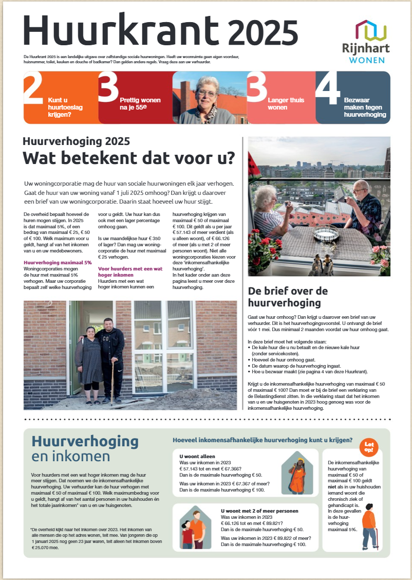 Vóór 1 mei ontvangt u een brief met het voorstel voor uw nieuwe huur vanaf 1 juli 2025. Bekijk de huurkrant hier.
