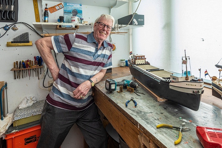 Tinus: “Zeker! Uiteindelijk heb ik tot mijn 35ste op zee gevaren. Nu ik met pensioen ben, bouw ik modelschepen. Door het artikel van Rijnhart Wonen vragen veel mensen of ik hun boot wil nabouwen. Ik heb ooit ook 4 boten gebouwd voor het scheepsvaartmuseum in België.”