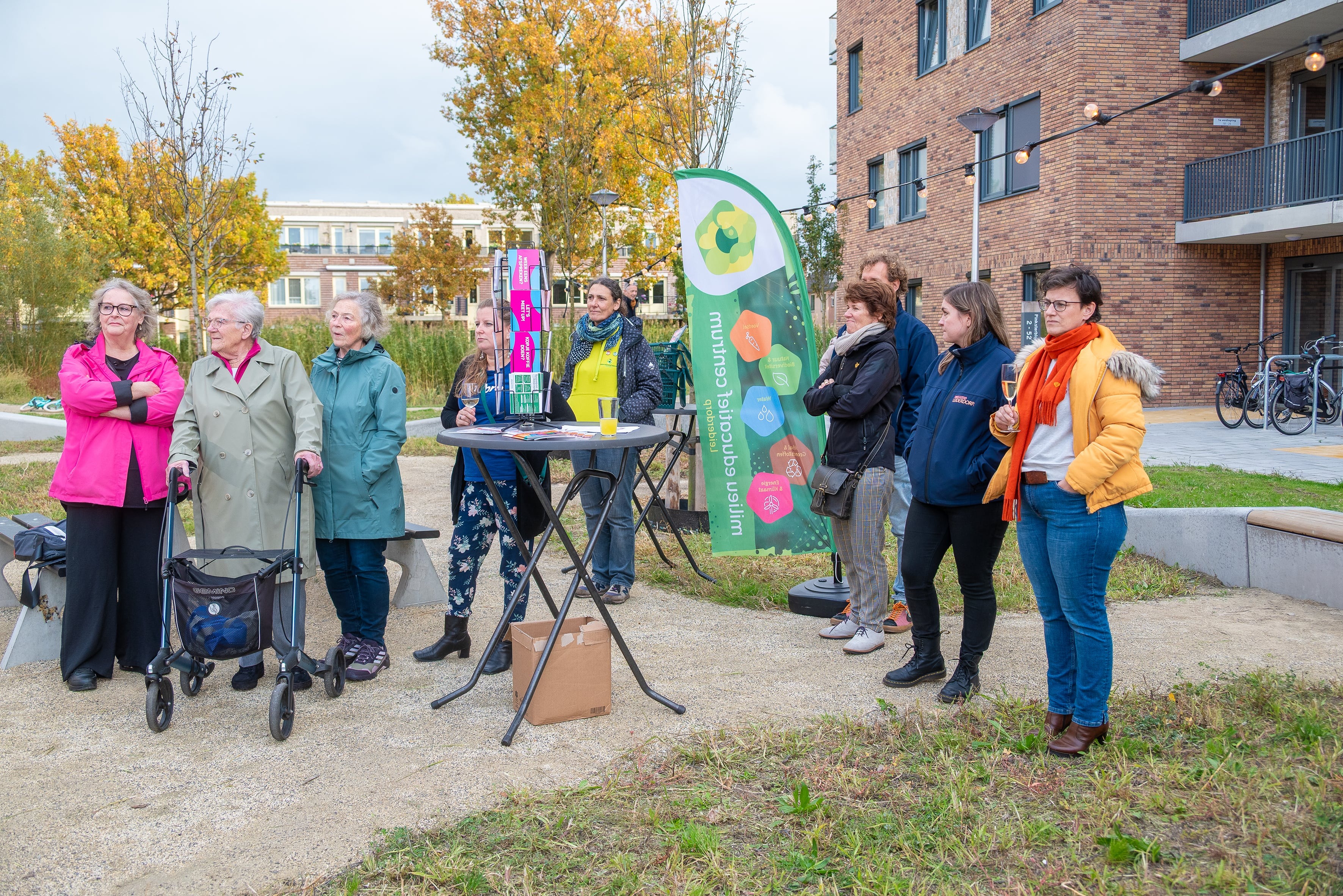 Tijdens de opening werd het glas geheven op deze nieuwe fase voor de buurt. De gemeente was aanwezig om meer te vertellen over de aanleg van de buurttuin, een plek waar ontmoeting en groen centraal staan.