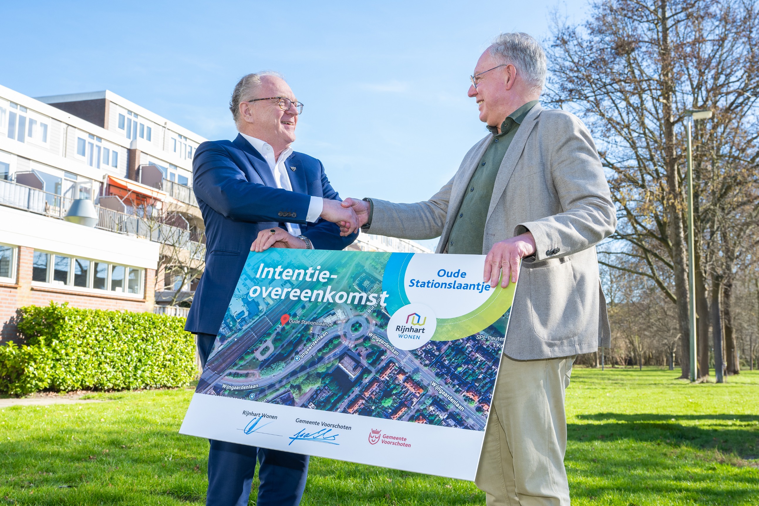 Het bouwen van 120 sociale woningen en 20 middenhuurwoningen aan het Oude Stationslaantje. Daarvoor sloten woningcorporatie Rijnhart Wonen en gemeente Voorschoten gisteren een intentieovereenkomst.