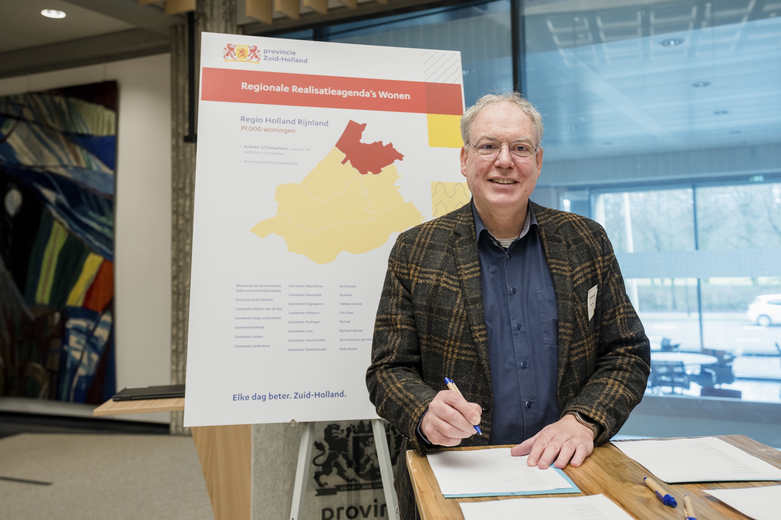 Jan Hoek, sinds 1 februari directeur van Holland Rijnland Wonen, legt uit: “De opgave is groot. De corporaties in dit werkgebied zien een nog grotere opgave dan de gemeenten. Door ook als koepel de afspraken te ondertekenen maken we onze onderlinge solidariteit zichtbaar. In praktijk betekent dat, dat wanneer de ene corporatie een nieuwbouwontwikkeling door omstandigheden niet op kan pakken, de andere 13 klaar staan om bij te springen.”