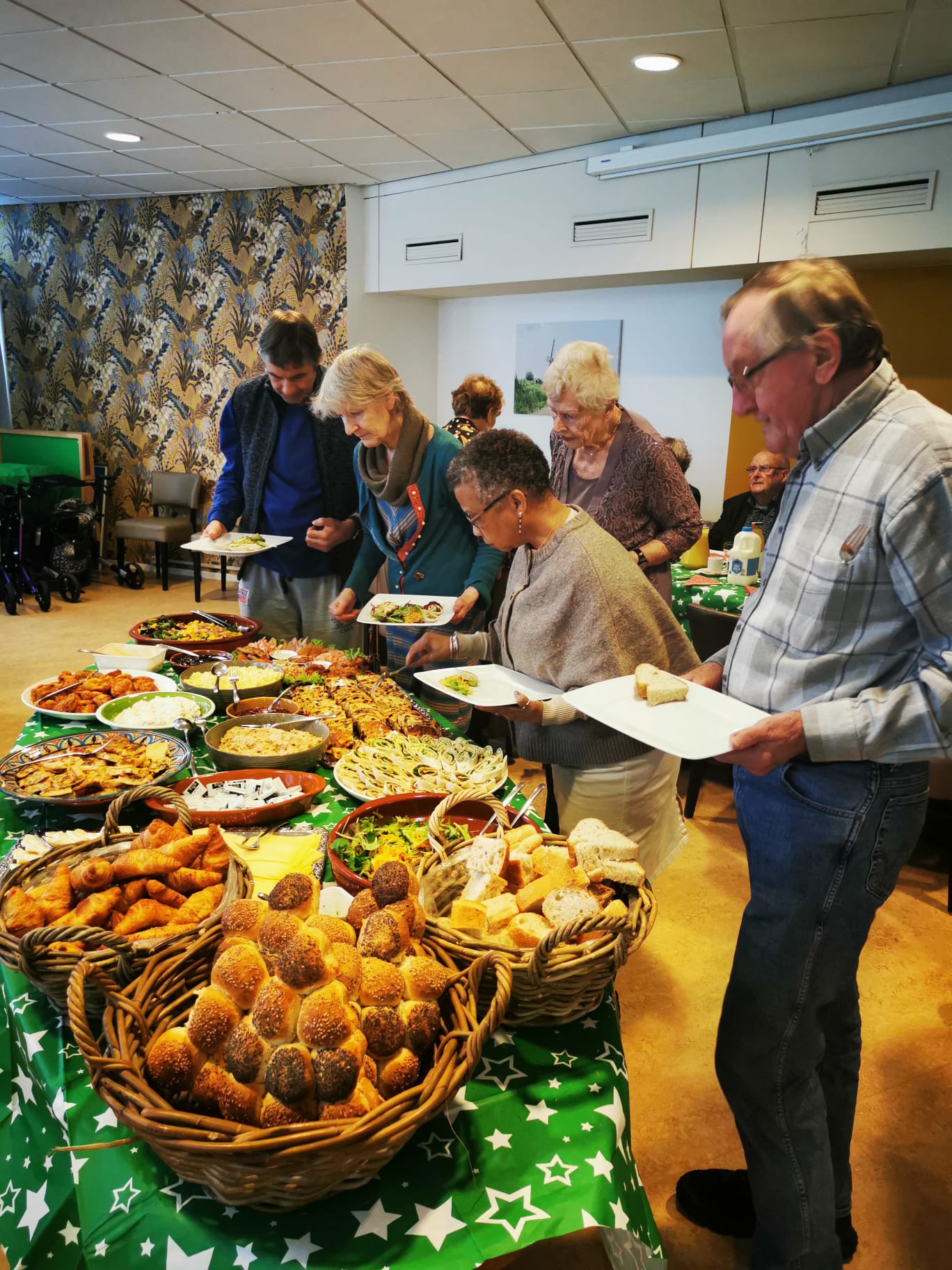Op Tweede Kerstdag organiseerde Incluzio een gezellig lunchbuffet in buurthuis De Hoeksteen in de Leiderdorpse wijk Schansen en Dreven. Bijna 40 bezoekers genoten van samenzijn en lekkere hapjes. “Ik dacht dat we een broodje kaas zouden krijgen, maar dit was boven verwachting”, vertelt een bezoeker.